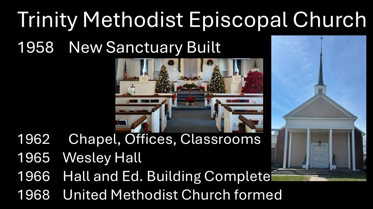 Trinity has deep roots in Salem County and in Pennsville in particular. Trinity began as a Methodist Episcopal church in 1775, in 1972 it began a United Methodist Congregation and in 2026 began a Global Methodist Congregation. Included below are pictures and timelines of our church buildings, we are now renting space at the PV Church of the Nazarene.